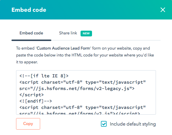 양식 임베드 코드가 편집되면 Audience 모듈에서 사용자 정의 리드 양식을 만들고 잠재 고객 양식을 오디언스 지원 플레이어와 연결합니다.