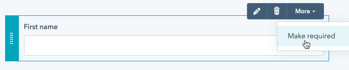 - 필드를 필수로 만들려면 필드 위에 마우스를 놓고더보기 필드로 > 만들기를클릭합니다. 필수 필드에는 필드 레이블 옆에*가 표시됩니다.